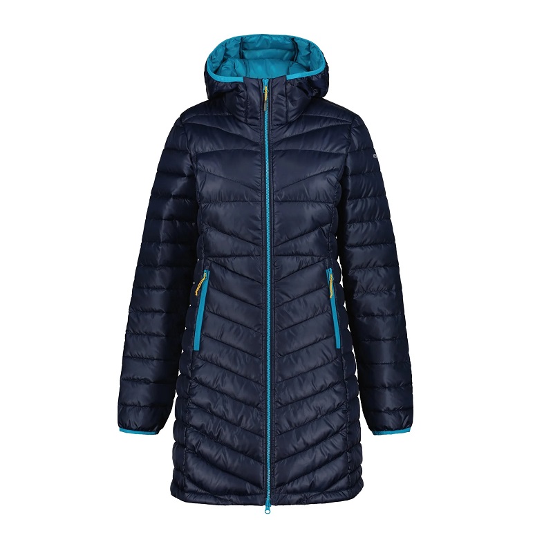 Dámsky kabát Icepeak Benham. Pevná kapucňa. Dve predné vrecká na zips. Obojsmerný zips na prednej strane. Vodoodpudivá úprava je vyrobená bez zlúčenín PFC. Pri konštrukcii produktu AWS ACTIVE bola venovaná mimoriadna pozornosť funkčnosti a komfortu, takže je vhodný pre aktívny aj uvoľnený pohyb. Povrch látky je vodoodpudivý. Vetruodolný materiál vás udrží v teple. Teplá výplň.