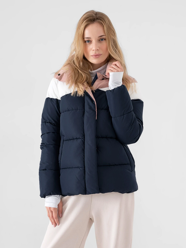 Dámska bunda bez kapucne a so syntetickou výplňou, zaručuje optimálny tepelný komfort v chladnejšie dní. Hydrofóbna impregnácia vonkajšieho materiálu podporuje ochranu pred absorpciou vlhkosti.