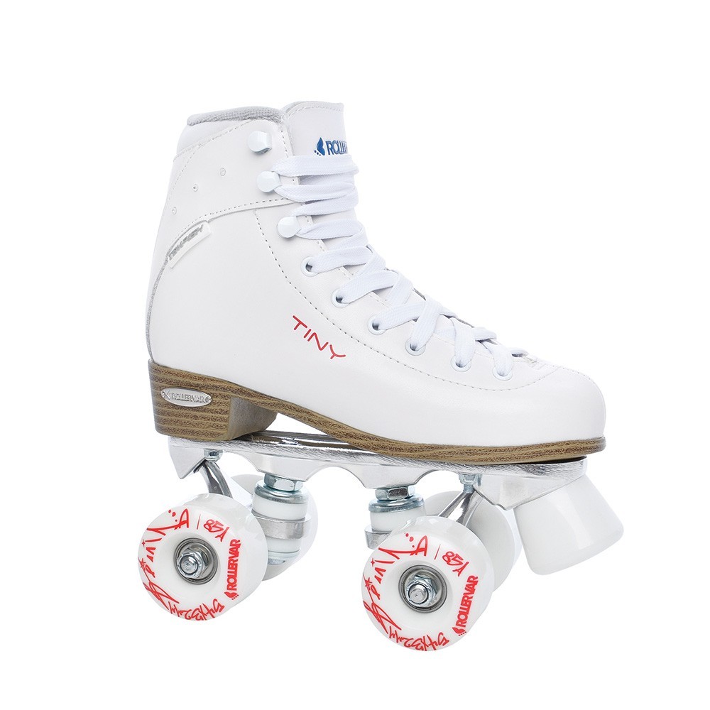 Klasické kolieskové korčule sú vybavené štyrmi kolieskami, ktoré sú v dvoch radách. Vhodné pre rekreačné a športové fitnes kondičné korčuľovanie, tanec na korčuliach. TINY PLUS sú vyrobené z pravej hovädzej kože a zvršok je osadený trblietavými kamienkami. Stredne vystužená topánka s prechodom ku komfortnému (mäkkšiemu) vystuženiu v oblasti nad členkom, zaisťuje pohodlný pohyb. Vnútorný materiál je vlhkosť odvádzajúci BK mesh. Podvozok je zliatina AL s brzdou. Osadený kolieskami Quad 54x32mm 82A. Ložiská ABEC 7 chrome.